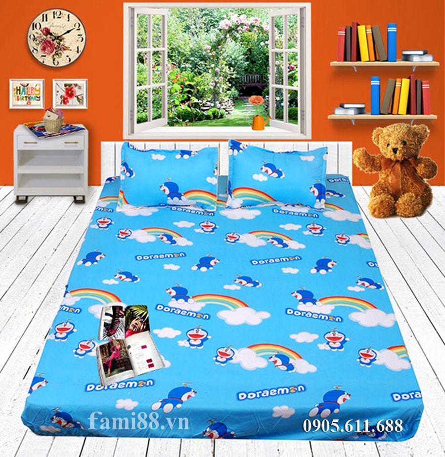 Bộ chăn ga gối đệm hình doremon màu xanh cầu vồng, một mẫu chăn ga đẹp cho bé trai bé gái. Sản phẩm chăn ga gối hình Doraemon sử dụng vải cotton 100% sợi thiên nhiên bền đẹp. An toàn cho làn da của bé và thân thiện với môi trường. Các bạn cũng thể lựa chọn thêm nhiều mẫu chăn ga gối cho bé trong bộ sưu tập chăn ga gối hoạt hình tại Fami88.vn.