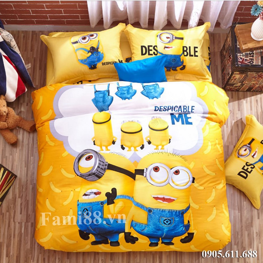 Chi tiết bộ chăn ga gối Minion chuối vàng cho bé trai bé gái