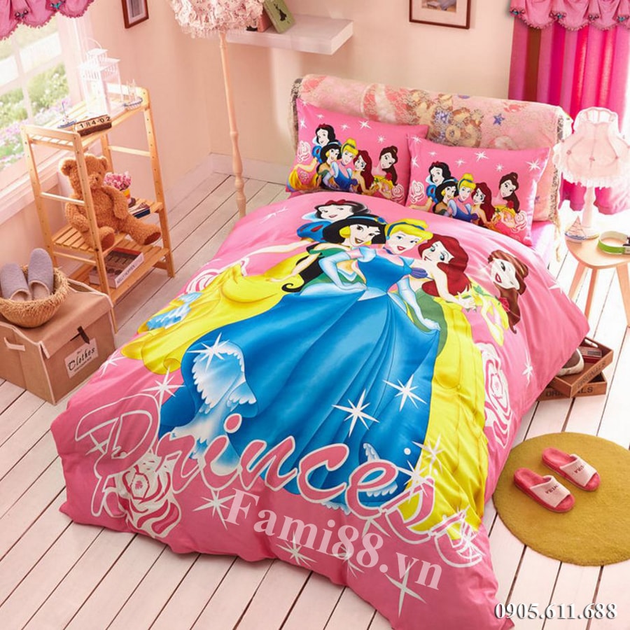 Các bộ chăn ga gối năm nàng công chúa Disney liên tục được cập nhật tại Fami88.vn. Bộ chăn ga gối công chúa Princess Disney với họa tiết hình 3D năm nàng công chúa Disney xinh điệu đẹp mà các bé mê thích. Cùng với bộ chăn ga chiếc giường ngủ trở nên nổi bật trong không gian phòng ngủ của các bé gái.