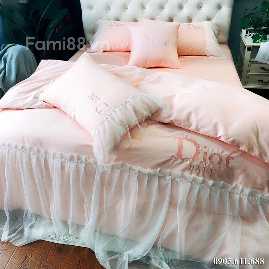 Chăn ga gối thương hiệu Dior Paris một mẫu nổi bật trong bộ sưu tập chăn ga gối thương hiệu tại Fami88. Sản phẩm được may thiết kế trên chất liệu vải lụa cao cấp mềm mịn, họa tiết thêu chi tiết nổi bật.