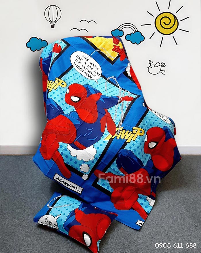 Chăn người nhện Spiderman cho bé một mẫu chăn nổi bật nhất trong bộ sưu tập chăn gối cho bé đi học tại Fami88. Sản phẩm sử dụng chất liệu cotton sateen sợi tự nhiên mền mịn, thấm hút tốt, họa tiết hình siêu nhân người nhện Spiderman mà bé coi là thần tượng. Giúp các bé ngủ ngon hơn, sâu hơn, hào hứng hơn khi ở nhà cũng như trên lớp học.