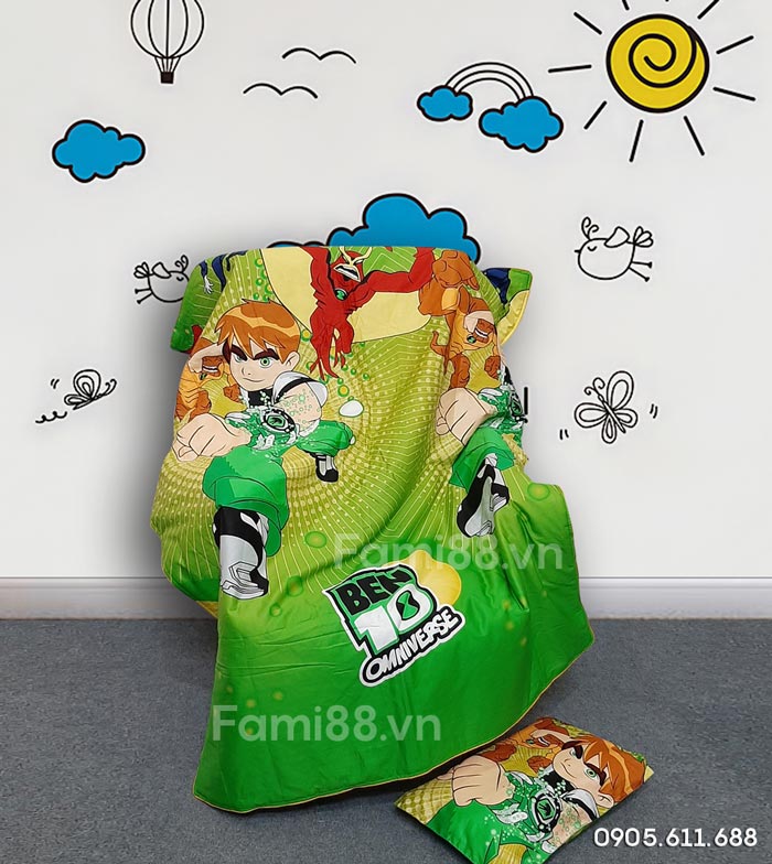 Chăn siêu nhân cho bé thiết kế trên chất liệu cotton sateen, họa tiết siêu nhân Ben 10 nhiều bé trai yêu thích. Các mẫu chăn gối cho bé đi học tại Fami88 được thiết kế nhỏ gọn tiện lợi cho bé đem đến lớp, chất liệu được lựa chọn kỹ lưỡng an toàn và tốt cho sức khỏe của bé.