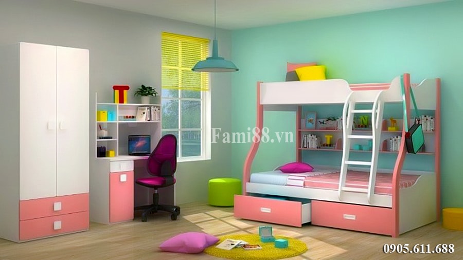 Giường Tomy 3 tầng trắng hồng có giá sách – Giường tầng trẻ em là sự lựa chọn của hầu hết các gia đình hiện đại khi mà diện tích nhà ở khiêm tốn nhưng vẫn cần một không gian nghỉ ngơi lý tưởng cho các con. Nếu như mỗi con ngủ tách biệt trong một phòng mang đến tính riêng tư, độc lập thì giường tầng lại có vai trò gắn kết tình yêu thương, sự đoàn kết mà các con vẫn có thể tự khám phá, vui chơi theo cách mà mình thích. Dưới đây là bộ giường tầng trẻ em đẹp, độc đáo để cha mẹ tham khảo trước khi quyết định lựa chọn mua kiểu mẫu nào là phù hợp nhất cho con của mình nhé.
