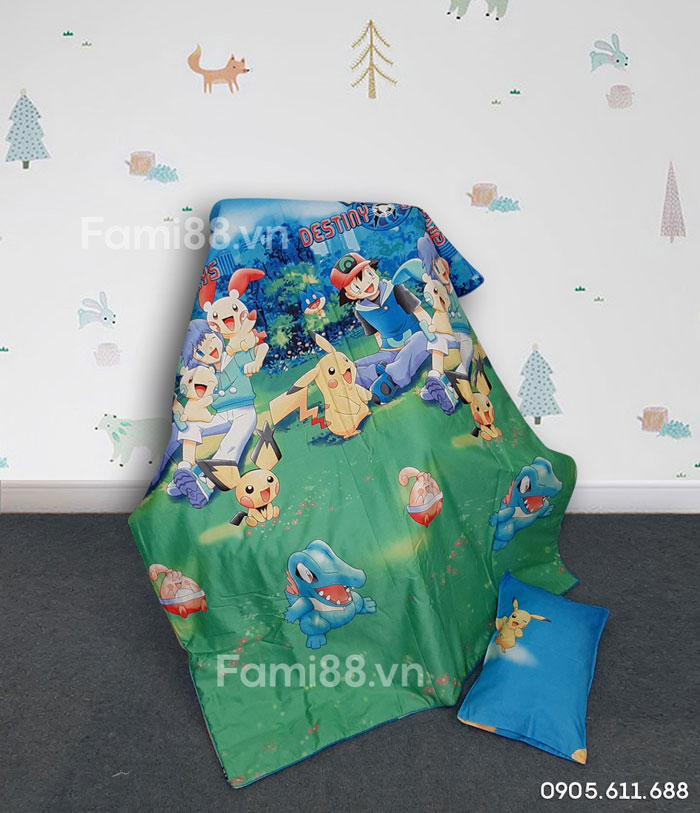 + Sau ít ngày ra mắt, tuyển tập bộ chăn ga gối cho bé đi học của Fami88.vn đẹp nhất Hà Nội, tp HCM đang rất rất HOT. Được nhiều mẹ phụ huynh trường VinSchool, trường mầm non quốc tế, trường mẫu giáo chất lượng cao lựa chọn tin dùng cho con. Và đặc biệt, các bé cưng vô cùng mê thích, ngủ ngon hơn, và thật tự hào bên các bộ nệm cho bé đi nhà trẻ hình Pikachu của Fami88.vn – có đúng nhân vật hoạt hình bé cực say mê.