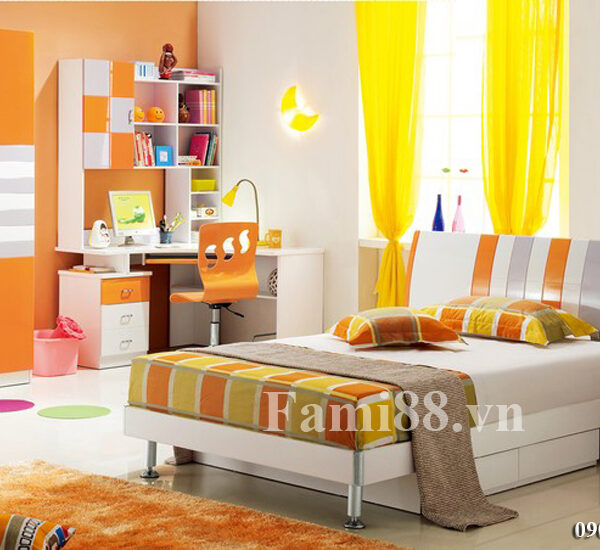 Chi tiết bộ phòng ngủ bé trai bé gái tông cam